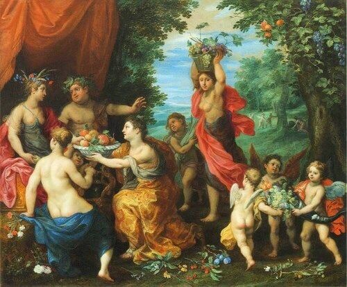バッカスって何って聞かれたので…ギリシャ神話の神様。豊穣の酒の神。ゼウスの腿から生まれたんですね。ギリシャ神話ではデュオニソス。葡萄の冠をかぶった裸の青年として通常は描かれます。やはり、お酒の神様だけあって、酔っ払ってる姿が多いかなぁ。子ど…